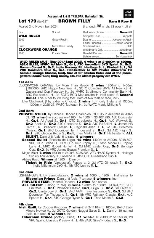 She hails from an elite female line, headlined by Champion 3YO Filly Private Steer, a three-time Group 1 winner. Packed with speed, class and toughness, this filly profiles as a sharp, high-quality type with serious upside.