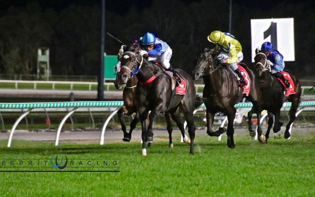 Another strong winning display by Without Thinking last night in the CALOUNDRA SHOPPING CENTRE QTIS THREE-YEAR-OLD BENCHMARK 65 HANDICAP 1600M at the Sunshine Coast, making it three wins in a row this campaign, after good victories at the Sunshine Coast and Ipswich.